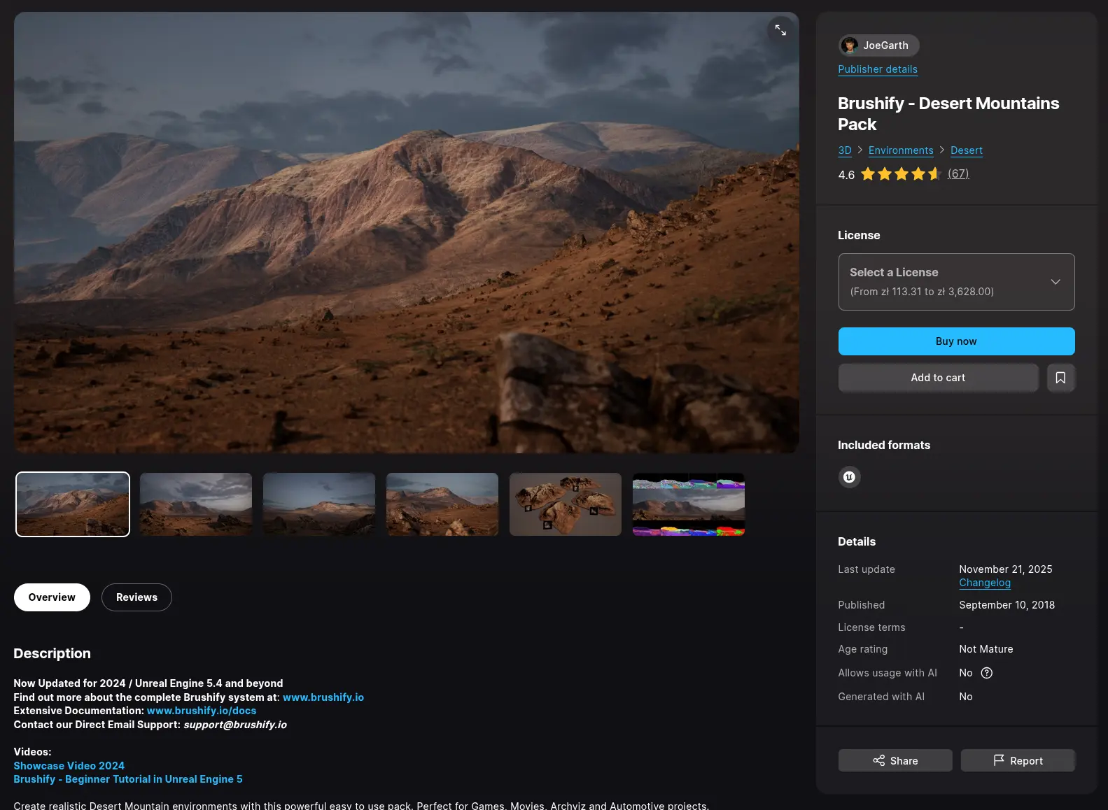 There is no denying that Unreal Engine 5 offers a staggering breadth of features straight out of the box. If your goal is to achieve cinematic fidelity in record time, UE5 is unparalleled. During my evaluation, I grabbed a free limited-time asset, the Brushify Desert Mountains Pack, which normally runs for 1,000 USD under a pro licence. Within an afternoon, I had dragged and dropped my way into a sprawling, photorealistic landscape that could comfortably stand shoulder-to-shoulder with modern AAA releases like Assassin’s Creed or Middle-Earth games.